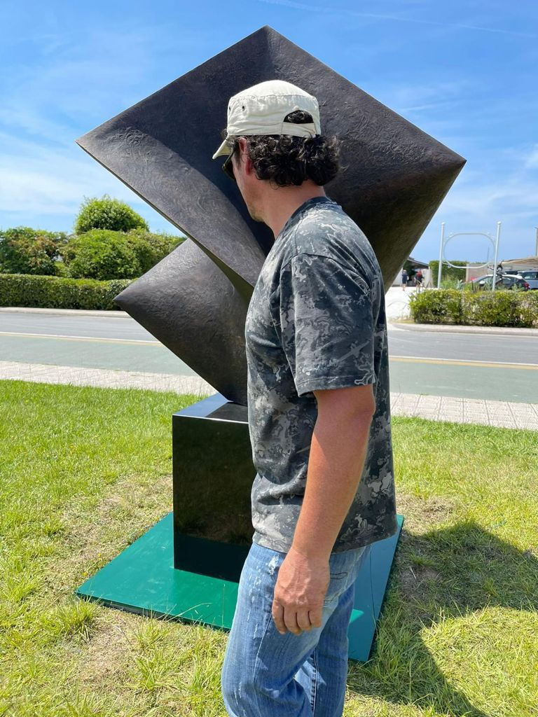 Oblong Contemporary Gallery took inspiration from the nature of this amazing place and decided to pay homage to the combination of Forte dei Marmi and art: the placement of monumental works by Colombian artist Gustavo Vélez represents the best opportunity to bring the man closer to matter. The Forte dei Marmi community and the tourist community are called to interact with the two sculptures, overcoming all types of material and figurative barriers to appreciate art in the true sense of the word. The bronze of Vèlez's works takes up the tradition of sculpture which is characteristic of Versilian history; steel adds the element of reflection, which not only acts as a mirror of the surrounding environment, but also deepens the link between the viewer and the work.